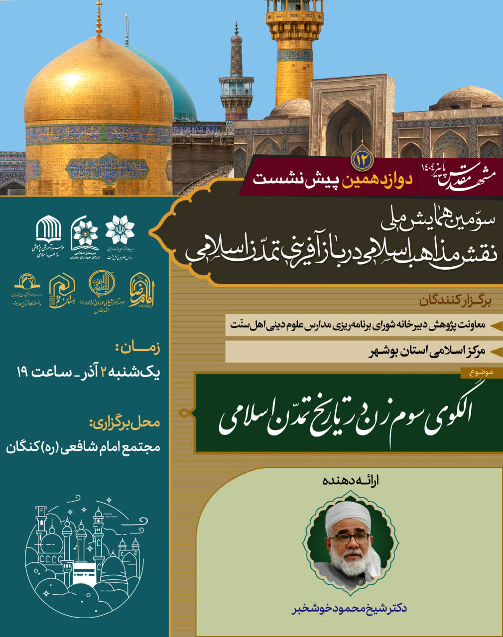 📣 دوازدهمین پیشنشست «سومین همایش ملی نقش مذاهب اسلامی در بازآفرینی تمدن اسلامی» در مجتمع امام شافعی کنگان، استان بوشهر برگزار شد
