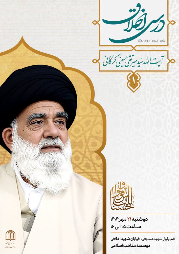 ✅ درس اخلاق #در_محضر_استاد 🎙 #آیت_الله_حسینی_گرگانی 🗓 دوشنبه ٢١ مهر ماه ۱۴۰۴ 🕒 ساعت ١۵ الی ١۶ 📌 قم، بلوار شهید صدوقی، بلوار شهید اخلاقی، مؤسسه مذاهب اسلامی 🔺 میزبان عموم علاقمندان هستیم 🔹 مؤسسه مذاهب اسلامی 🌐 www.mazaheb.com 📲 @qommazaheb