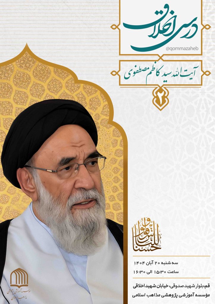 ✅ درس اخلاق #در_محضر_استاد 🎙 آیت الله مصطفوی 🗓 سهشنبه ٢٠ آبان ماه ۱۴۰۴ 🕒 ساعت ١۵:٣٠ الی ١۶:٣٠ 📌 قم، بلوار شهید صدوقی، بلوار شهید اخلاقی، مؤسسه مذاهب اسلامی 🔺 میزبان عموم علاقمندان هستیم 🔹 مؤسسه مذاهب اسلامی 🌐 www.mazaheb.com 📲 @qommazaheb